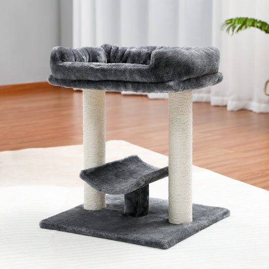 Arbre Ă chat design table de nuit beige et jouet pour chat