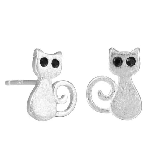 Boucles d'Oreilles Chat Clair de Lune (Argent)