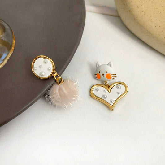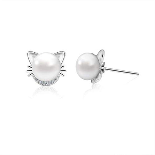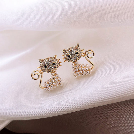 Boucles d'oreilles chat mignons pour femme avec perles