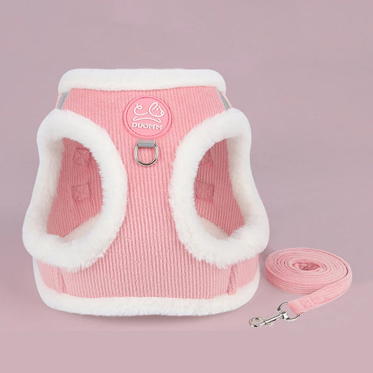 Harnais pour Chat Rose et Chaud en Coton avec Laisse